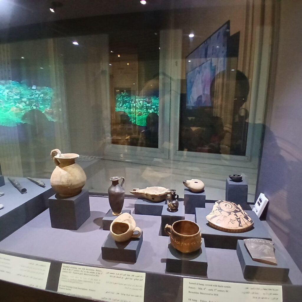 The exhibition displayed a remarkable collection of artefacts that shed light on the religious, economic, and social life of the city. Among the highlights were the Naos of Amun-Gereb, dedicated to ritual worship in the city’s temples, and a bronze Corinthian helmet discovered at the site, dating to the 4th century BC, believed to have adorned a statue of the goddess Athena, symbol of wisdom and warfare in Greek mythology. Together, these pieces illustrate the deep artistic and cultural interactions between Egypt and the Hellenic world.